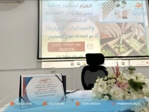 أقيم في مقر جمعية عزم ورشة عمل بعنوان(صناعة الإكسسورات وصناعه الميداليات الحرارية)تم تقديمها من المبدعات أ/نضال البقعاوي وأ/ايمان الشرطان لصاحبات العزم (مستفيدات جمعية عزم ) وأشتملت الورشة على كيفية صناعه الاكسسورات وكانت ورشة علاجيه جمعت الصناعه والتسلية
