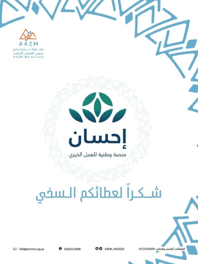 #شكر_وتقدير | لمنصة إحسان على دعمهم لـبرنامج كسوة العيد ، وبرنامج أجهزة وأداوت طبية شركاء نجاح #جمعية_عزم @EhsanSA بدعمكم ، وعطائكم المُتجدد ، وتعاونكم الدائم سَنصل لكُل مانطمح الية لخدمة #أبطال_التصلب