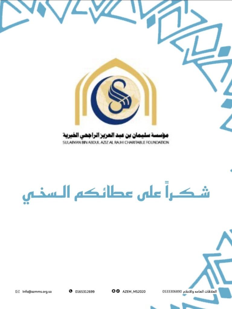 شكر و تقدير | مؤسسة سليمان الراجحي الخيرية