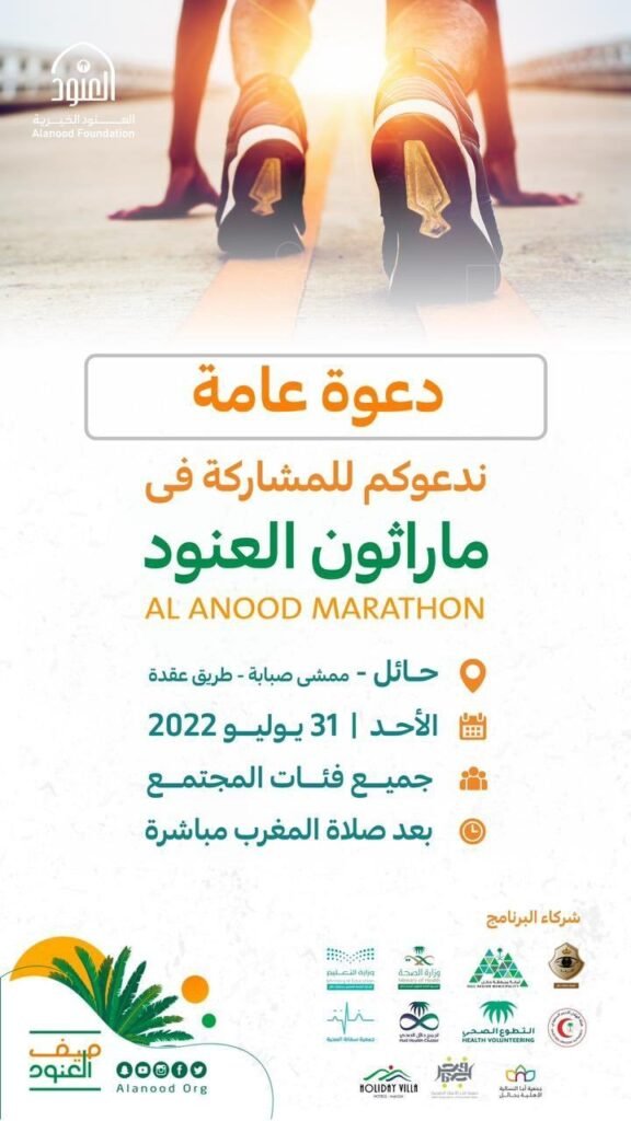 مشاركة|بالتعاون مع مؤسسة الأميرة العنود الخيرية @AlanoodOrg شارك عدد من #أصحاب_العزم وأعضاء #فريق_عزم_التطوعي في الماراثون المقام في ممشى صبابة بمشاركة جهات حكومية وخاصة وأفراد بهدف توعية المجتمع باهمية ممارسة الرياضة.