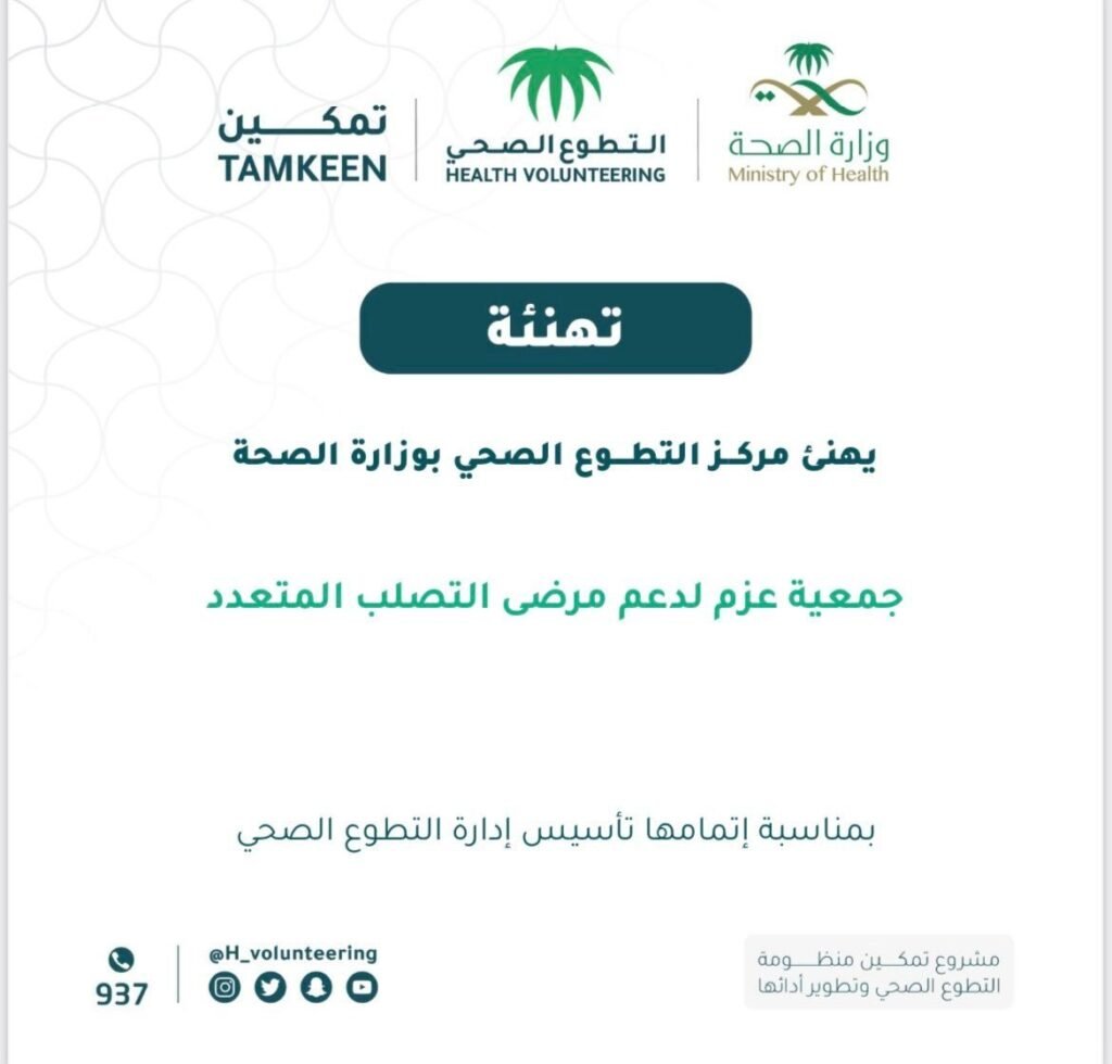 الحمدلله من قبل ومن بعد … تم تأسيس وحدة إدارة التطوع الصحي لدى جمعية عزم للتصلب المتعدد الشكر لله ثم لــ التطوع الصحي @H_Volunteering وقسم التطوع في جمعية عزم بارك الله لكم ونفع بنا .