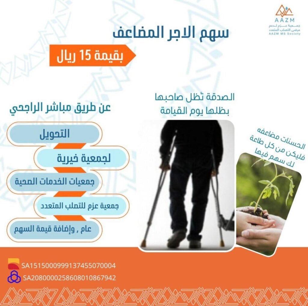 من لم يبذر لم يحصد🌾 أزرع بذور صدقتك وأحصد أجرها المستمر لك ولمن تُحب🧡 وكُن سبباً في تأهيل مريض تصلب وشارك في سهم الاجر المضاعف