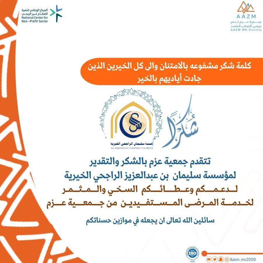 تتقدم جمعية عزم لدعم مرضى التصلب المتعدد لـمؤسسة #سليمان_الراجحي_الخيريه #شكراً لعطاء أياديكم السخية لمستفيدين #جمعية_عزم لدعمهم لمشروع #كسوة_الشتاء للفئه الأشد حاجه من مستفيدين الجمعية.
