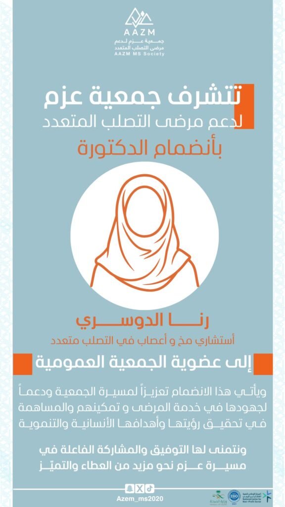 #خبر |✨ تشرفنا بإنضمام الدكتورة : رنا الدوسري عضو من أعضاء الجمعية العمومية بهدف تعزيز مسيرة الجمعية ودعماً لها في سبيل تحقيق أهدافها تشرفنا بإنضمام سعادتكم