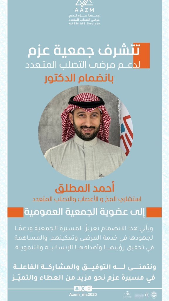 #خبر |✨ تشرفنا بإنضمام الدكتور : أحمد المطلق عضو من أعضاء الجمعية العمومية بهدف تعزيز مسيرة الجمعية ودعماً لها في سبيل تحقيق أهدافها تشرفنا بإنضمام سعادتكم
